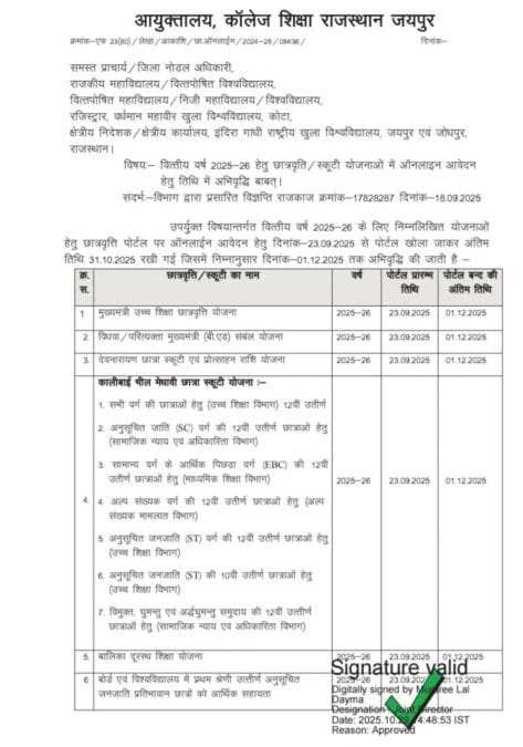 - आवेदन की अंतिम तिथि: 31 अक्टूम्बर 2025